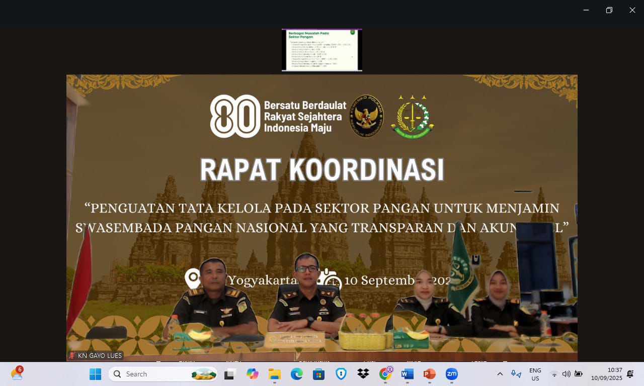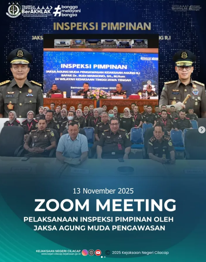 Video Conference terkait Pengarahan Inspektur IV pada Jaksa Agung Muda Bidang Pengawasan dalam Rangka Inspeksi Umum di Lingkungan Kejaksaan Tinggi Jawa Tengah